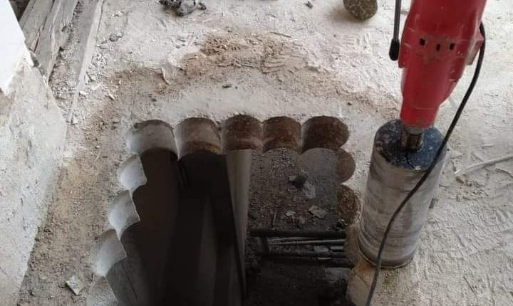 • القيام بـ قص خرسانة وعمل فتحات لمروحة الشفط
